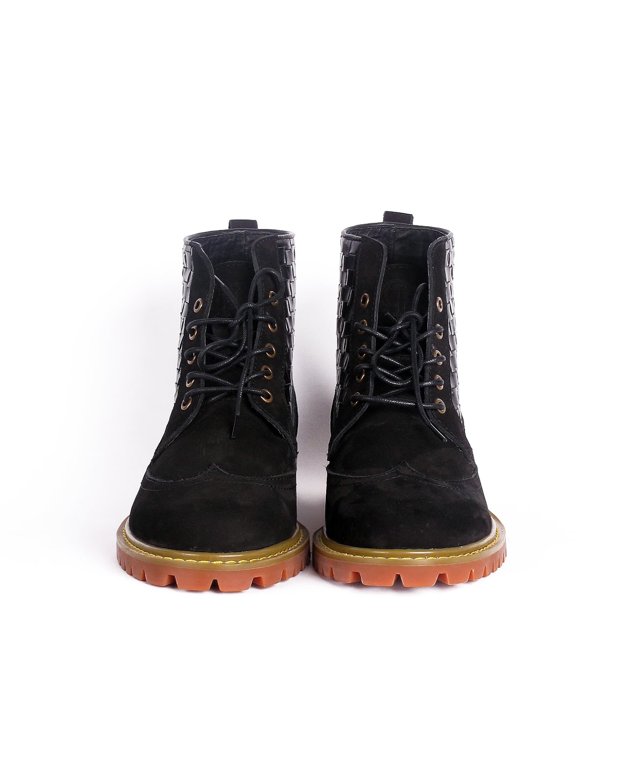 This autumn Dutch menswear label OntFront carefully enters the realm of footwear for the very first time. It proudly presents a hand crafted Wing Tip Boot in a single color. It’s made of a black soft brushed nubuck with smooth braided leather on the ankles. Finished with a firm pig skin lining and waxed laces. The OntFront wing tip boot is a limited edition of only 150 pairs worldwide. It costs 195,- EU (about 250,- US dollars) and is available exclusively at the OntFront store in Amsterdam, or at their webstore.